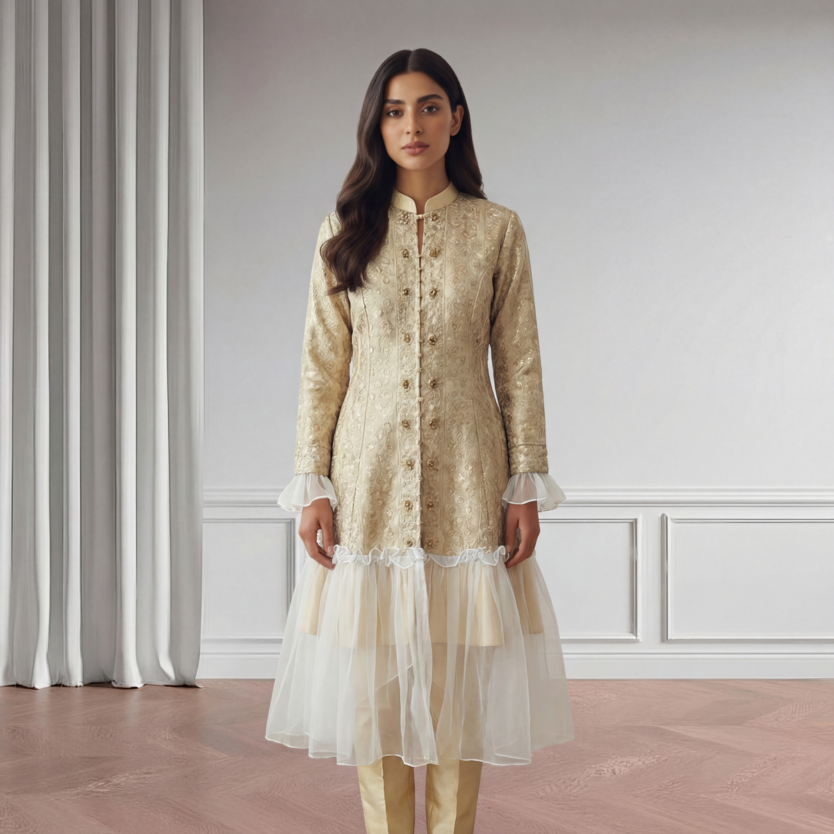 3 pc Luxurious Organza Embroidered Silk Suit